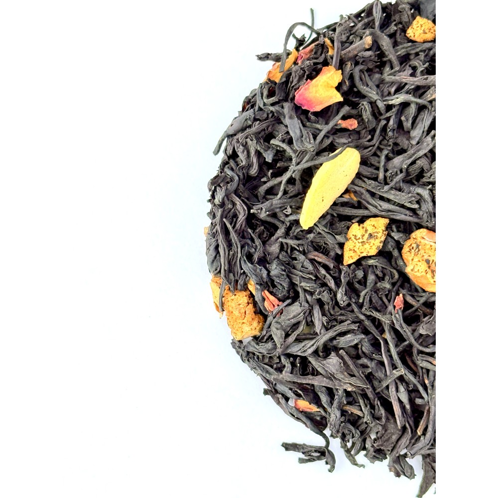 Чай з горіхово- карамельними нотами аромату та смаку, в якому знайшли себе і пелюстки троянди, і пластівці мигдалю, і шматочки яблука.