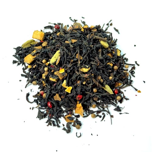 Цей чорний чай створений для справжніх поціновувачів пряних, насичених напоїв. У складі – натуральні шматочки кориці, смаженого яблука, коріандру, цедри апельсина, гвоздики, кардамону та рожевого перцю. Завдяки унікальному поєднанню спецій, чай має виражений зігріваючий та тонізуючий ефект, чудово підходить для холодної пори року. Відчуйте гармонію смаку та аромату з кожним ковтком!