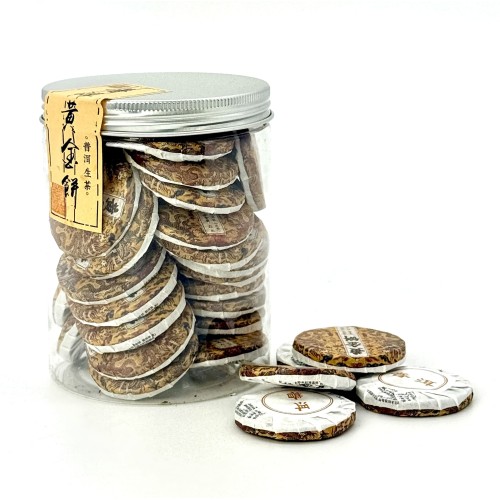 Шен Пуер «Золота монета» — це справжня знахідка для поціновувачів класичного молодого пуеру та тих, хто цінує зручність. Чай спресований у невеликі порційні диски («монети»), що дозволяє легко заварювати його без використання спеціальних ножів для пуеру. Кожна порція — це ідеально збалансована кількість добірного листя для одного повноцінного чаювання.