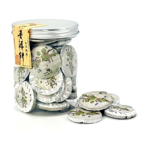 Шу пуер «Медаль з мандарином» — це ідеальний баланс між насиченою міцністю витриманого пуеру та яскравою свіжістю цедри мандарина. Чай спресований у зручні порційні медалі (міні-точі), кожна з яких загорнута в індивідуальну упаковку, що зберігає ефірні олії та глибину аромату.