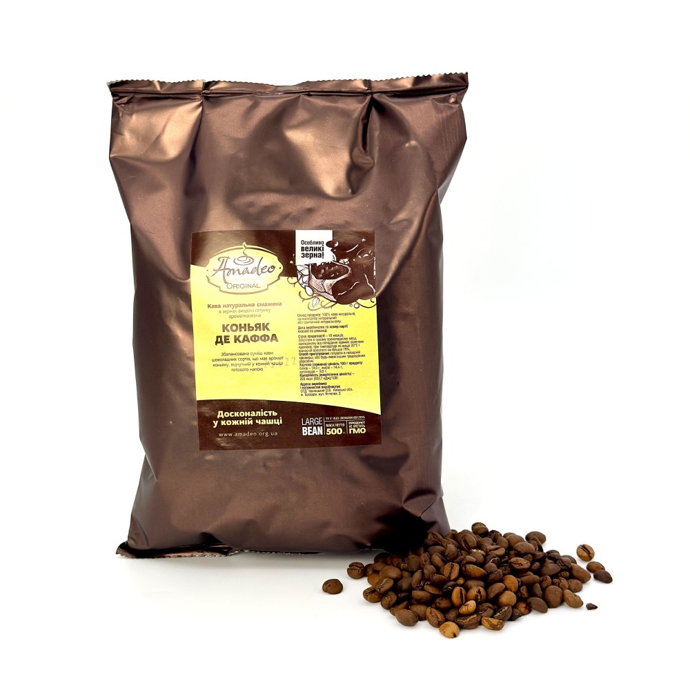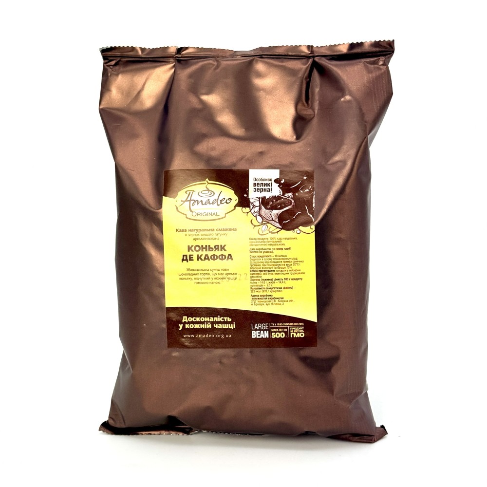 Збалансована суміш кави шоколадних сортів, має аромат коньяку, відчутний в кожній чашці готового напою.