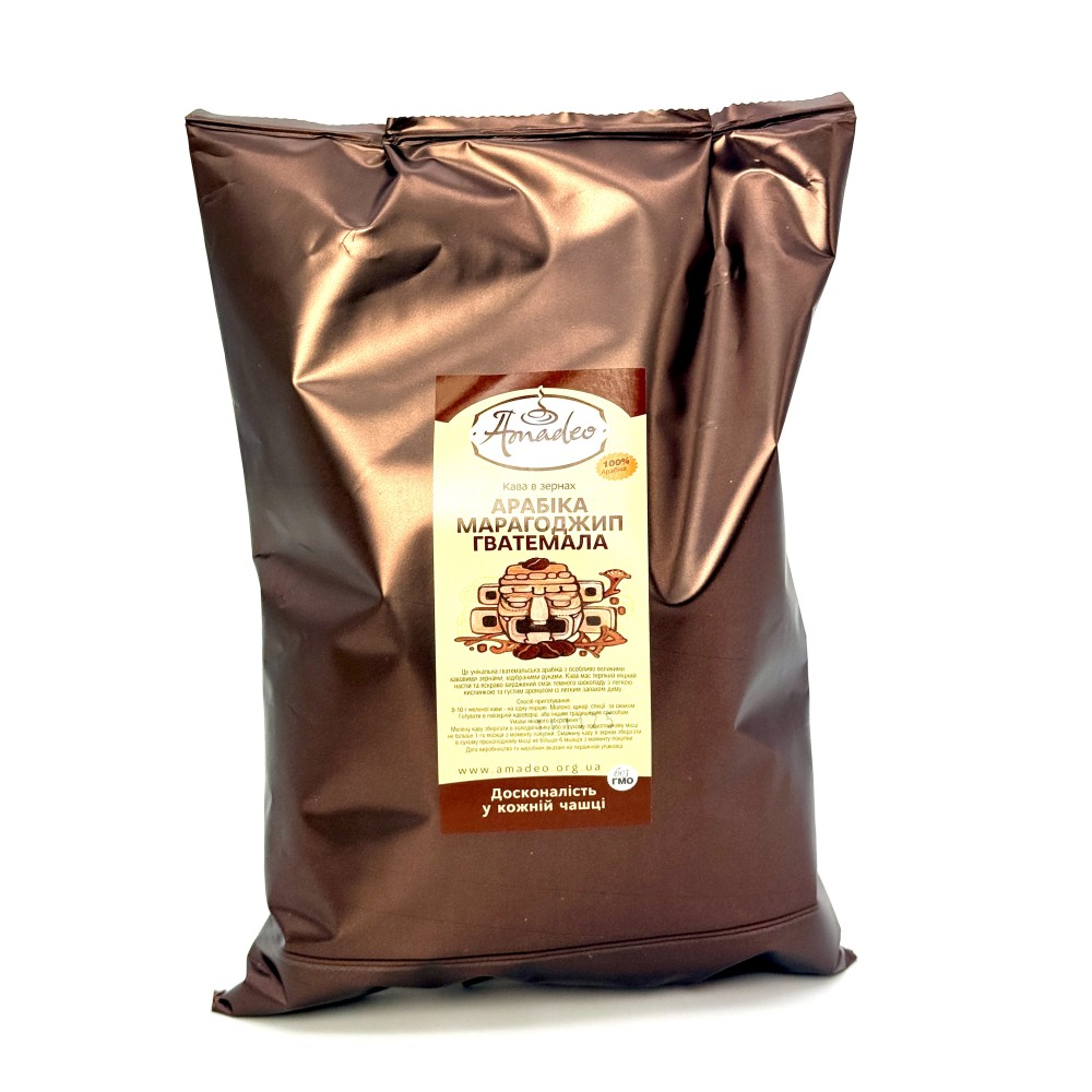 Унікальна гватемальська арабіка з особливо великими зернами, відібраними вручну. Ця кава володіє терпким, міцним настоєм і яскравим вираженим смаком темного шоколаду з легкою кислинкою і густим ароматом з димними відтінками.