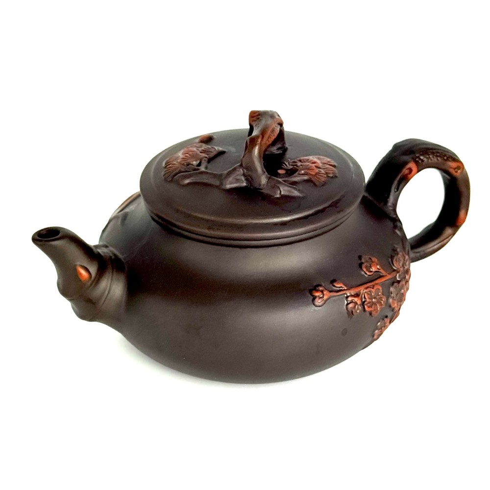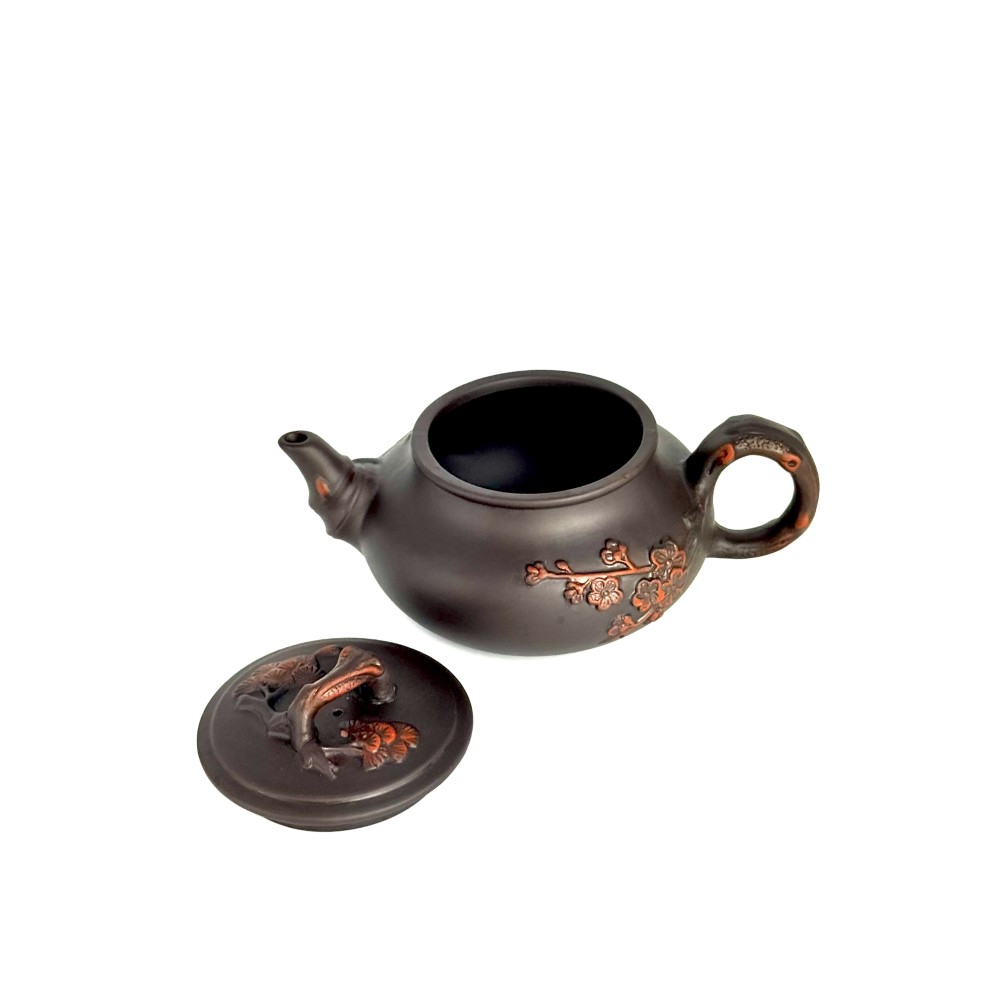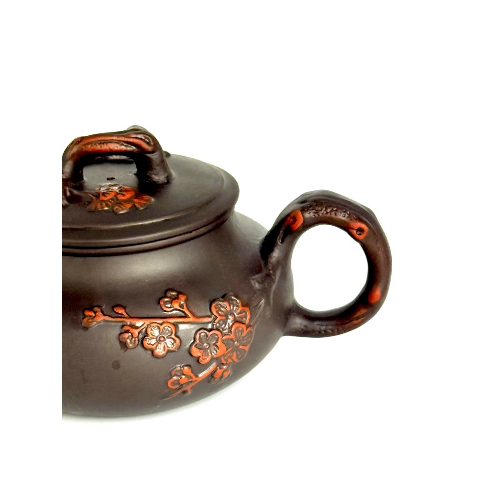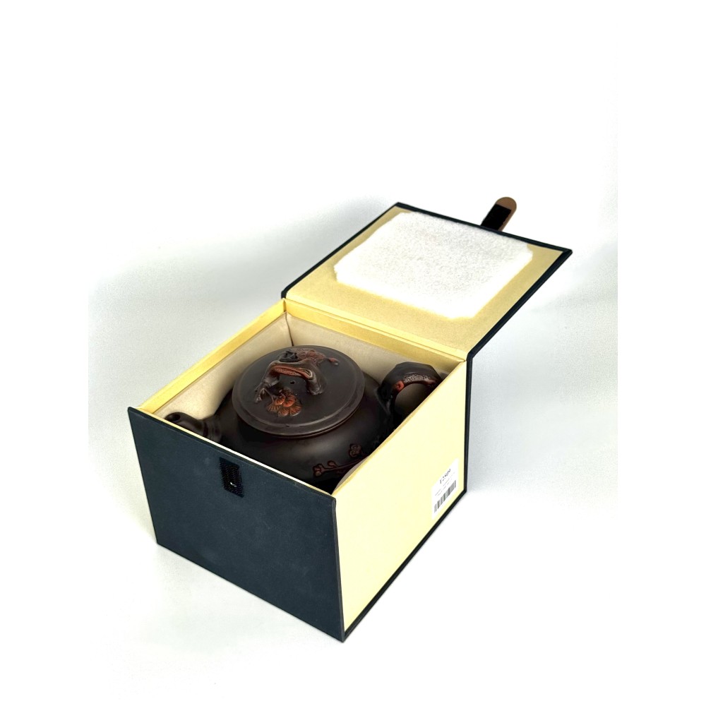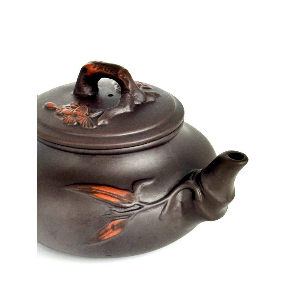 Чайник має зручну форму, продуманий носик і фільтр усередині, що забезпечує комфорт під час наливання і чистий настій без чаїнок. Оригінальний рельєф і відтінок «червоного листка» додають естетики чайній церемонії та чудово поєднуються з піалами чи гайванями в схожому стилі.