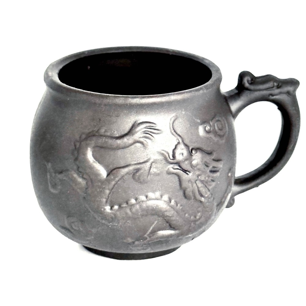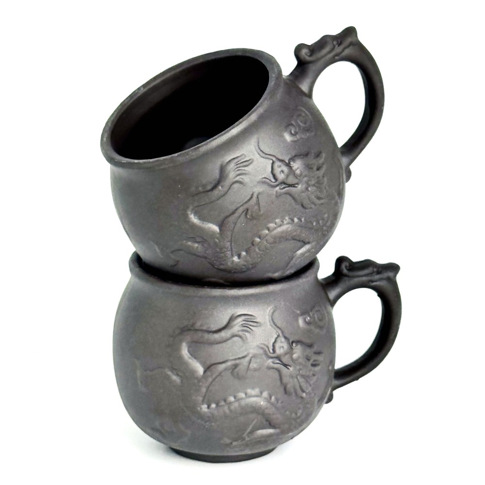 Відчуйте містичну атмосферу східної чайної церемонії з набором кружок «Лун-дракон», виготовлених з високоякісної темної ісинської глини. Ця унікальна глина, відома своїми пористими властивостями, з часом збагачує смак чаю, роблячи його глибшим і витонченішим. Кожна кружка об'ємом 200 мл виконана вручну, прикрашена деталізованим рельєфним зображенням східного дракона та оригінальною ручкою у формі його голови. Глибокий, темний колір посуду підкреслює таємничість дизайну. Такий набір стане чудовим доповненням до колекції поціновувачів чаю або розкішним подарунком для любителів фентезі та східної міфології.