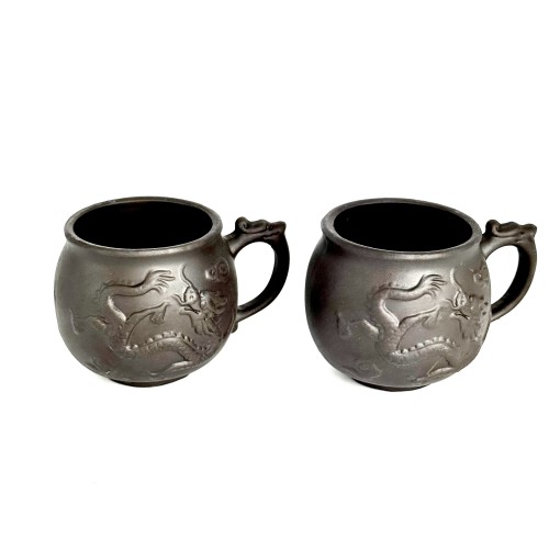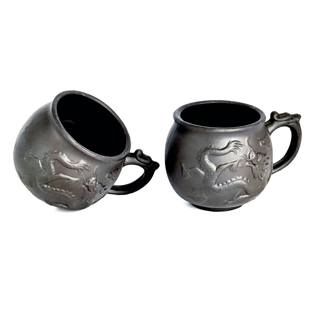Набір з 2-х кружок 'Лун-дракон', темний, 200 мл — ісинська глина ручної роботи.