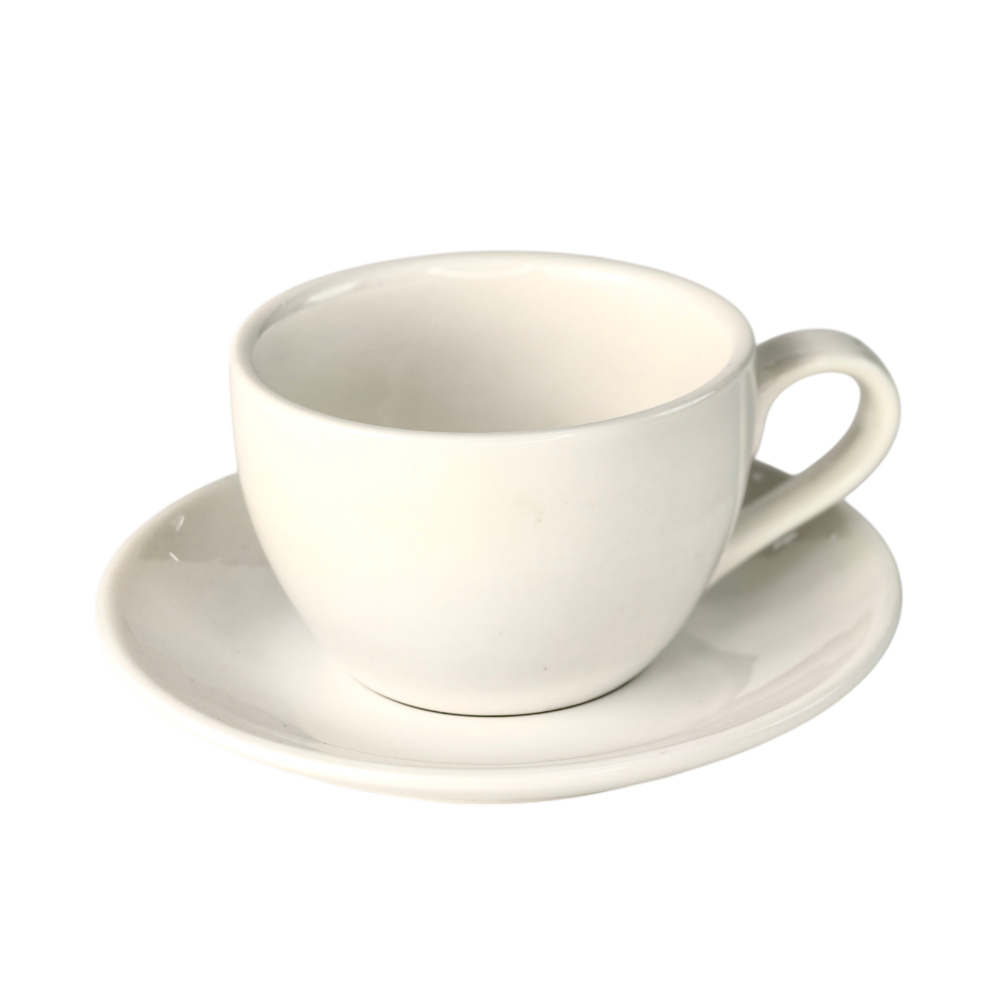 - Професійна ергономіка: Зручне вушко розраховане на комфортне тримання навіть повної чашки, а стійке блюдце запобігає випадковому проливанню напою при подачі.