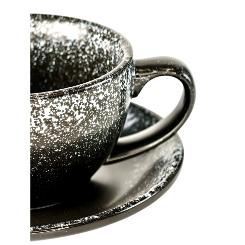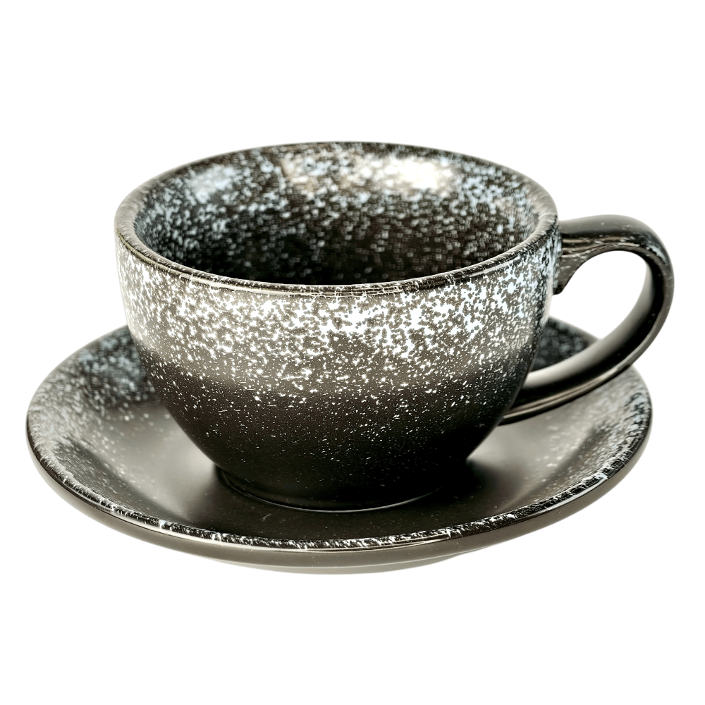 - Естетика преміум-класу: Глибока текстура «Чорного снігу» створює розкішний фон для білосніжної молочної піни або насичених відтінків фруктового чаю. Такий посуд підкреслює статус закладу та додає сервіруванню особливого характеру.