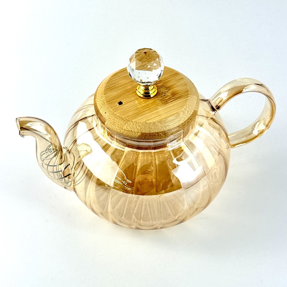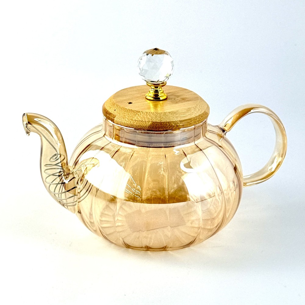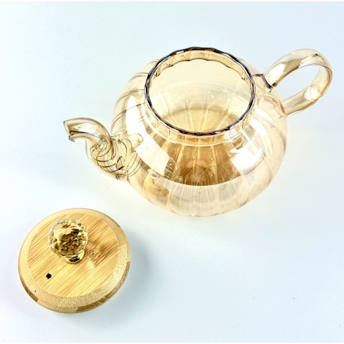 Чайник заварювальний "Пампкін бурштиновий" на 600 мл із жароміцного скла, з кришкою та ситом у носику.